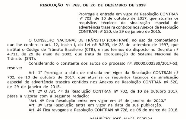 Com a publicação da Resolução 768/2018, a mudança só será exigida a partir de janeiro de 2020.